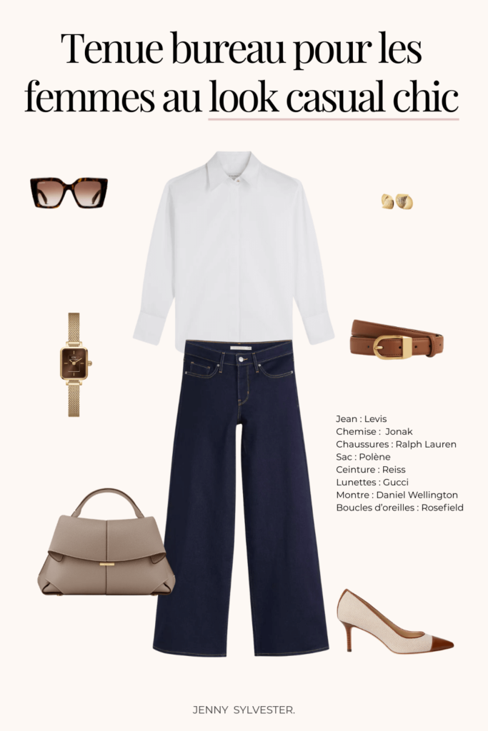- Start-up / look casual : jean brut chic, pull en laine, basket élégantes
