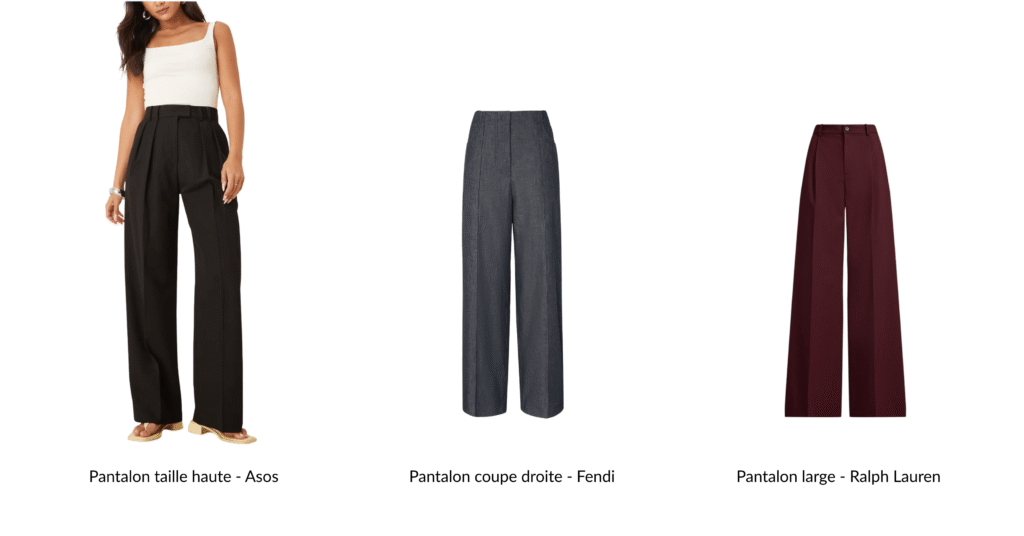 Le pantalon taille haute est un incontournable. Il affine le tour de taille, camoufle un ventre rebondi et donne un très bel effet structuré.